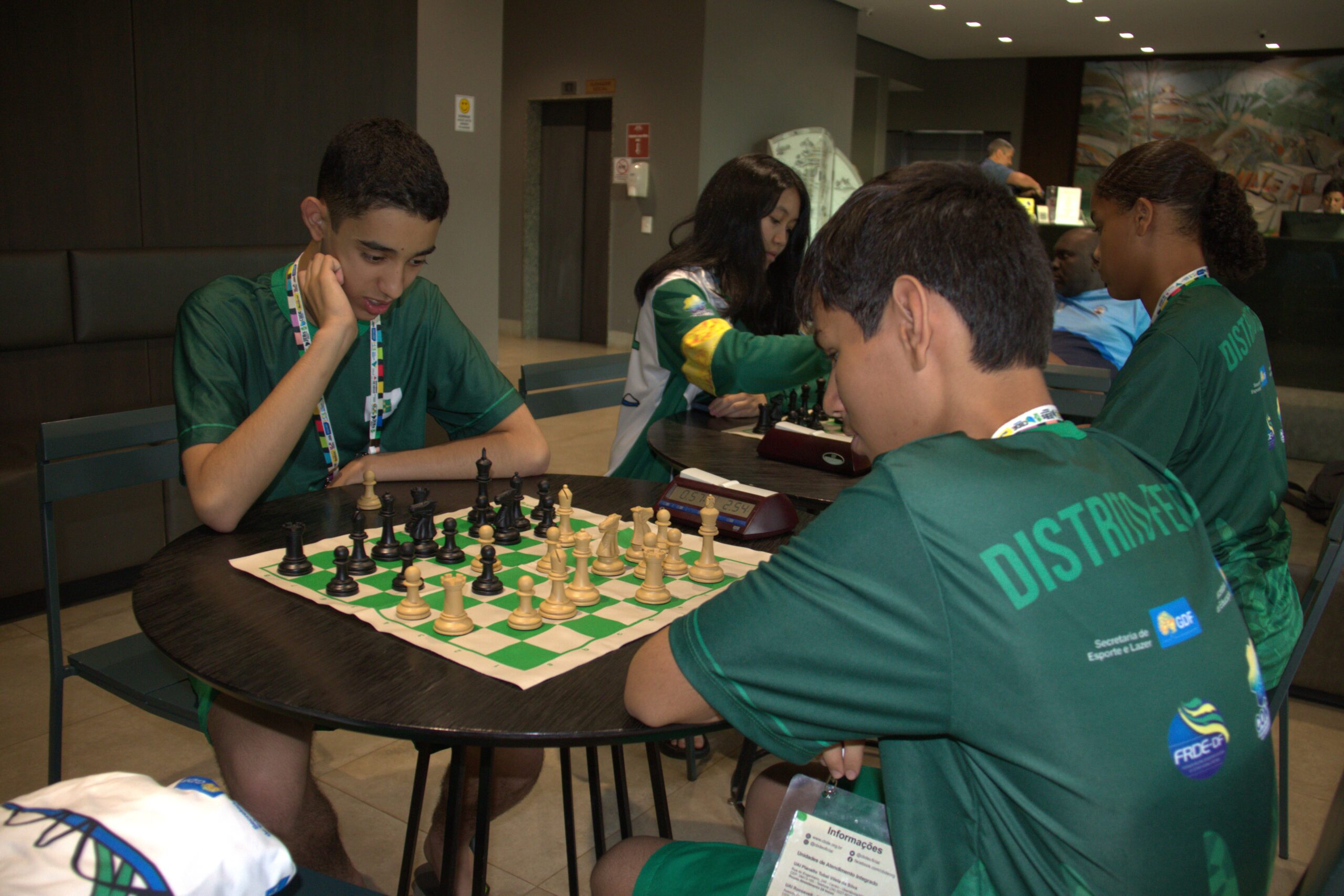 Já no xadrez, o primeiro dia de competições terminou com duas vitórias, um empate e uma derrota para os estudantes do Distrito Federal. As disputas continuam ao longo da semana, com três rodadas na quarta-feira e mais uma na quinta-feira.